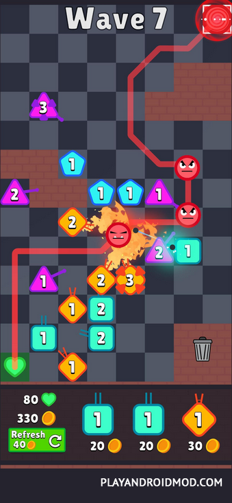 ShapeNMaze перенесет вас в раздираемую войнами фантастическую галактику. Сотни сражений остались позади, а победитель так и не найден. Возможно, это титул дожидается именно вас. Возьмите на себя защиту собственной базы. Ваша задача - расставляя турели, направить врага по самому длинному пути. Это позволит выиграть время для укрепления своей базы перед грядущим нападением. Необходимые для этого турели можно приобрести в игровом магазине. Чем их больше, тем сложнее будет отрядам врага пробить вашу оборону и достичь своей цели.