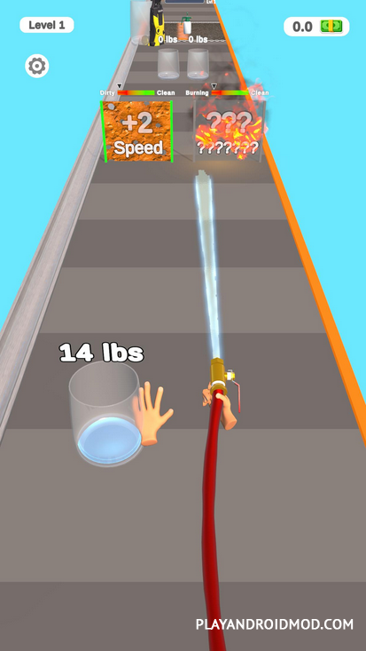 Каждый уровень игры разделен на два этапа. На первом необходимо наполнить емкости водой. При этом придется «сражаться» с препятствиями. От того, насколько удастся заполнить емкости будет зависеть мощность вашей минимойки. Заполняйте ее водой и приступайте к уборке. Делать этот под качественное звуковое сопровождение будет довольно приятно. Убедитесь в этом прямо сейчас.