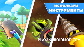 Управление здесь осуществляется от первого лица, что добавляет реализма происходящему. С помощью соответствующих кнопок вы будете управлять героем, в руках которого лопата.