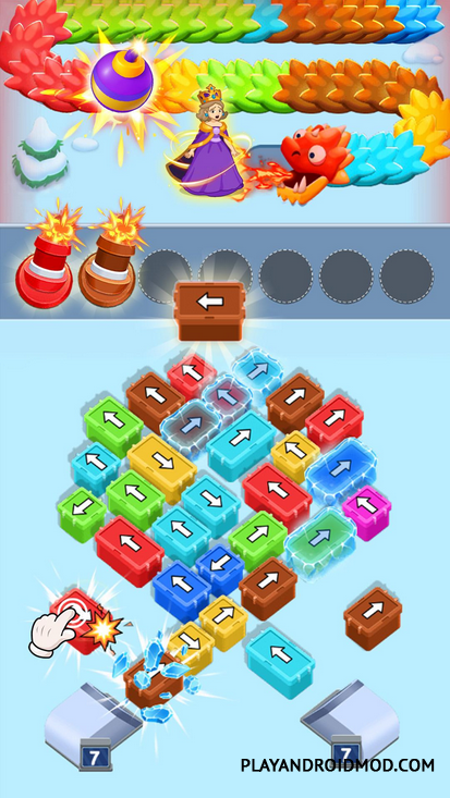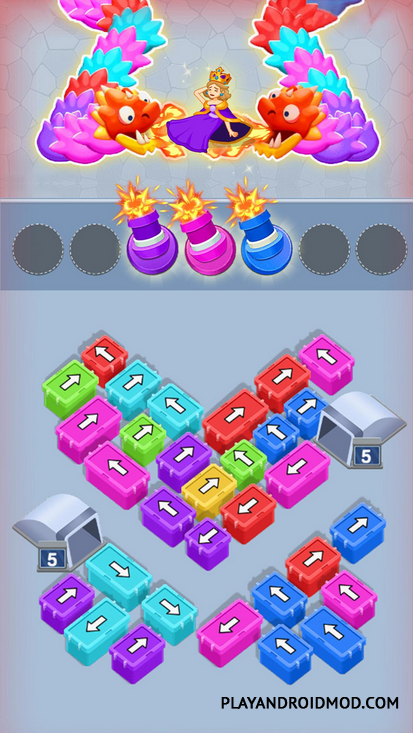 Каждый уровень здесь – это испытание, сложность которого возрастает. Будь то сражение с драконом или помощь девушке в поиске выхода из лабиринта, ваша цель – грамотно перемещать предметы разного цвета. У каждого элемента имеется направление возможного движения, отмеченное соответствующей стрелкой.