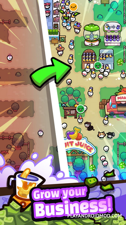 Вы разрезаете фрукты мощной бензопилой, которые идут на изготовление соков, смузи и других фруктовых напитков. Далее они отправляются на продажу. Заработанные деньги идут на покупку новых участков земли, улучшение техники, найм сотрудников, автоматизацию процессов. Благодаря Idle-элементам, процесс не останавливается, даже когда вы не в игре.