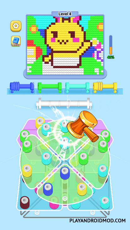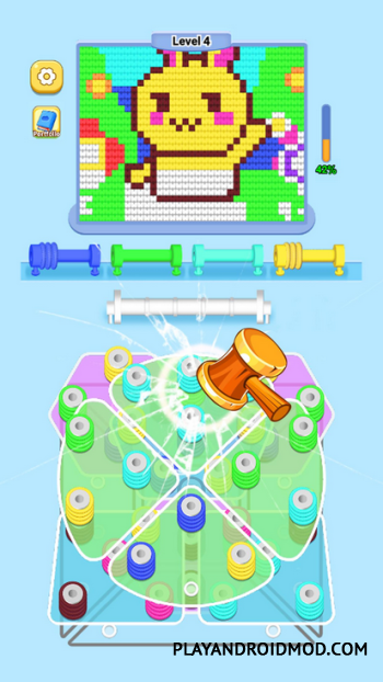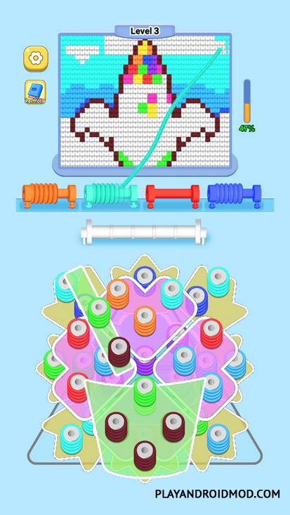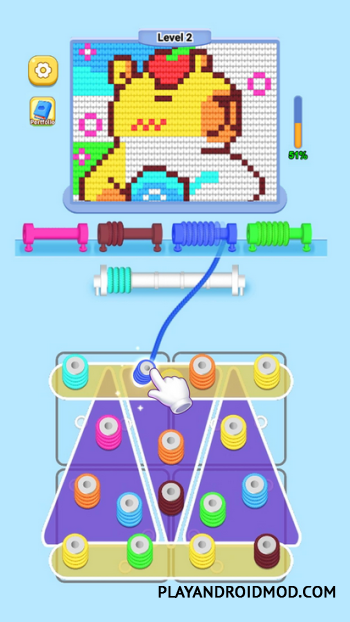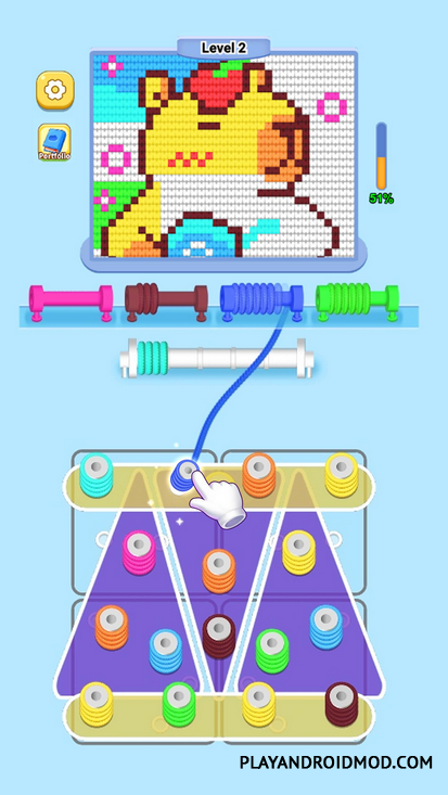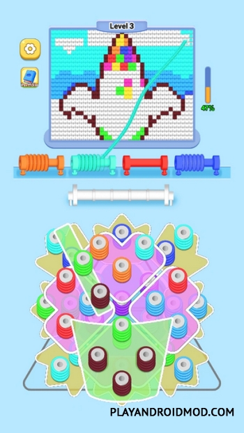 В процессе игры ты не просто играешь, а создаешь художественные полотна из цветных нитей. Каждая правильно отсортированная нить добавляет красок на фон.
