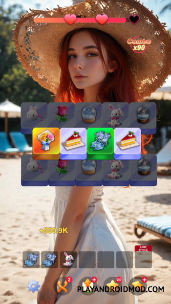 Механика игры весьма привычна - нужно соединять три и более одинаковые плитки, которые приносят очки, исчезая с поля. Собранные комбинации приносят сердца симпатии, которые становятся ключом к открытию новых образов для персонажей. Образы меняются по мере накопления сердец. Это могут быть вечерние наряды, эксклюзивные костюмы, дерзкие комбинации и многое другое.