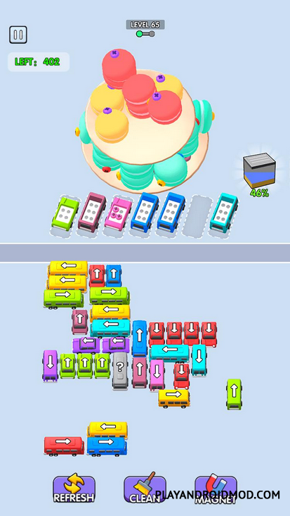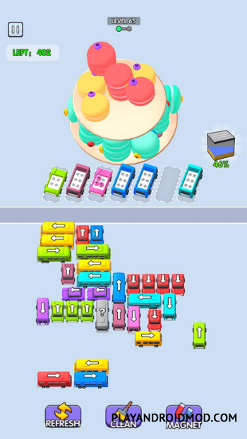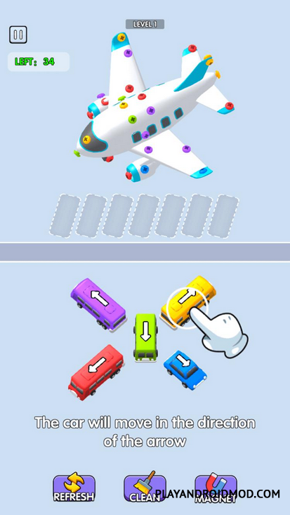 В нижней части экрана вы увидите пробку, состоящую из автомобилей. Ваша основная задача – освободить площадку. Машины могут ехать только в одном направлении, так что придется думать наперед, чтобы не оказаться в ловушке.