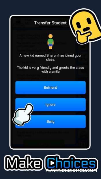 Another Life - Life Simulator предлагает геймеру прожить еще одну, лучшую жизнь, контролируя каждый ее аспект и планомерно двигаясь к цели. Создайте аватара и начинайте жить заново. Возможны два варианта развития событий. Вы можете взять каждое ее мгновение под контроль, а можете пусть все на самотек и просто наблюдать со стороны за происходящим. Лишь изредка направляя героя в нужную сторону. Под управлением хаоса все может пойти совершенно непредсказуемо, а значит вариантов развития событий множество. Другими словами, каждая ваша следующая жизнь будет неповторимой. Вы можете стать гендиректором большой компании, обычным учителем средней школы или просто учеником, мечтающем о счастливом и обеспеченном будущем. Как и в реальной жизни, начинать вам придется с малого, но постепенно выполняя задания, вы сможете разблокировать уникальные пути к цели: приобрести машину, купить дом, найти любовь всей своей жизни, создать семью и так далее.
