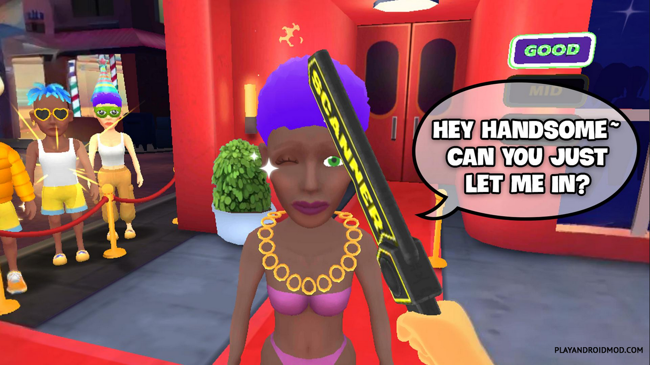 Security checker столкнет вас с настоящим хаосом. Как профессионал, вы должны привнести порядок в происходящее перед входом в ночной клуб.