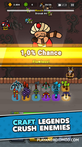 Lucky Forge: Idle TD Game - это игрушка в жанре защита башен, чем вы собственно и будете заниматься. От ваших навыков и удачи напрямую зависит удастся вам устоять или нет против целого войска соперника. Готовьтесь дать отпор врагам, куя мечи и создавая новое смертоносное оружие. Далее на каждом из уровней вы сможете выбирать, что и в каком количестве можете использовать. На деле на каждом из них вам будет доступно различное количество слотов под оружие: луки, мечи, катапульты и так далее. Направляйте их на многочисленные соперников и побеждайте. Каждая победа, уже по классике, принесет вам вознаграждение. Его можно потратить на прокачку оружия, увеличение его численности и так далее. Защищайте свой замок, ведь его будут пытаться захватить снова и снова.