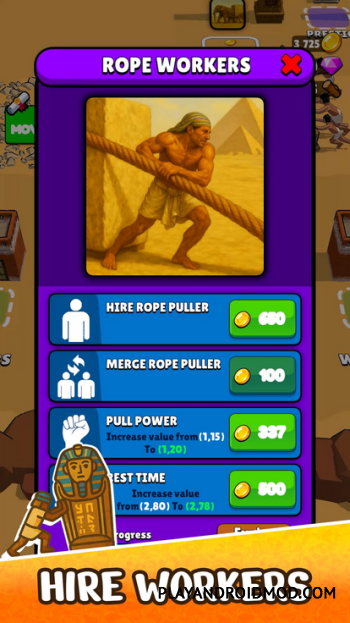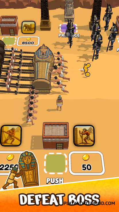 Tomb Pusher приглашает вас в увлекательное приключение, исход которого полностью зависит от ваших организаторских способностей. Ваша задача - доставка саркофага фараона через бескрайние пески пустыни. Делать это вы будете не сами, а с помощью бригады работников, которых вам предстоит нанять и организовать. Расставляйте их так, что движение саркофага было максимально быстрым. Также вам придется планировать маршрут движения и при необходимости корректировать его для большей эффективности. Если стратегии - ваш конек, сделать это будет не сложно. Главное учитывать особенности пустынных песков и расположение ловушек, в которые могут попасть ваши работники. Не допустите этого и успех вам гарантирован.