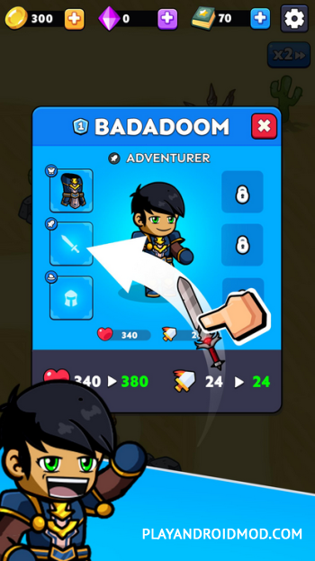 В игре много героев, отличающихся способностями, бонусами и внешним видом. Вы формируете команду, стараясь подобрать оптимальное сочетание навыков и ролей героев. Герои получают опыт и развиваются, открывая новые навыки - атакующие, защитные и вспомогательные. Персонажи используют умения сами. Игрок сосредотачивается на подготовке к бою - выборе команды, экипировки и навыков.
