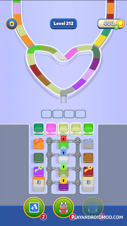 Beads Out ― увлекательная головоломка по сбору цветных шариков. В игре представлена простая, но интересная механика, которая затянет на многие часы прохождения. Ваша задача в том, чтобы вовремя собирать шарики, идущие по конвейерной линии, а потом их распределять строго по цветам в нужные коробки. При этом также важно не перегрузить их. То есть нужно следить одновременно за точностью цветов и весом, что не простая задача. Если первые уровни просты, но дальше нужно будет больше думать, быстрее реагировать и иногда поломать голову, как сделать лучше для прохождения. Благо будут доступны для покупки разные усиления и подсказки, которые помогут в прохождении особенно сложных уровней. В игре используется простая минималистичная графика с двухмерной рисовкой. Она даже скорее схематичная.
