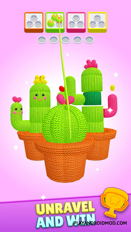 Unravel Master: Tangle Puzzle погружает пользователя в теплую расслабляющую атмосферу: объемные вязаные модели в меру ярких цветов, приятное музыкальное сопровождение – все настраивает на полноценный отдых. Задача игрока здесь проста: необходимо проанализировать предоставленную объемную модель (можно крутить под разными углами), выбрать одно место и начать ее «распускать», формируя «клубок» нити одного цвета. Уровни постепенно усложняются, заставляя пользователя менять стратегию распутывания или использовать бустеры при слишком сложной модели. Важно: таймера здесь нет! Поэтому игрок может спокойно позволить себе детально изучить модель и рассчитать последовательность действий, чтобы с минимальными усилиями пройти уровень и получить заслуженную награду.