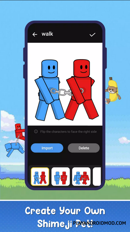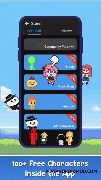 Floatoon: Create Shimeji Pets поможет пользователю реализовать самое смелое желание: сделать так чтобы его любимый персонаж всегда был рядом! Разработчики предоставили возможность пользователю создать своего анимированного персонажа или выбрать готовый вариант из библиотеки (представлены персонажи из игр, аниме, мультфильмов) и установить персонажа на экран мобильного телефона. При этом персонаж будет не в качестве статичной картинки, а практически как живой, так как динамичная анимация позволит ему выполнять самые простые действия (какие именно действия будут выполняться и с какой частотой – все можно настроить). При этом такой персонаж будет сопровождать везде: от просмотра игровых приложений до рабочих веб – страниц.
