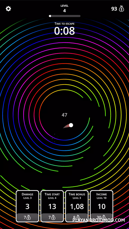 Idle Ball Escape ― казуальная игра, где вам нужно выбраться из колец. Шарик имеет физику, отталкивается от стенок и задача в том, чтобы попасть в прорезь на кольцах и тогда оно исчезнет. Кажется, задачка простая, но постепенно вызовы будут все более серьезными и сложными. Каждое столкновения со стенками колец позволит заработать игровую валюту, которую можно потратить на различные улучшения и модификации, по ходу прохождения. К примеру, можно ускорить шарик, или увеличить, а может и уменьшить его размер. Также можно купить новые скины, поменять цвета, открыть разные зрелищные визуальные эффекты и многое другое. Графика в игре полностью двухмерная и весьма красочная, используется стиль минимализма.