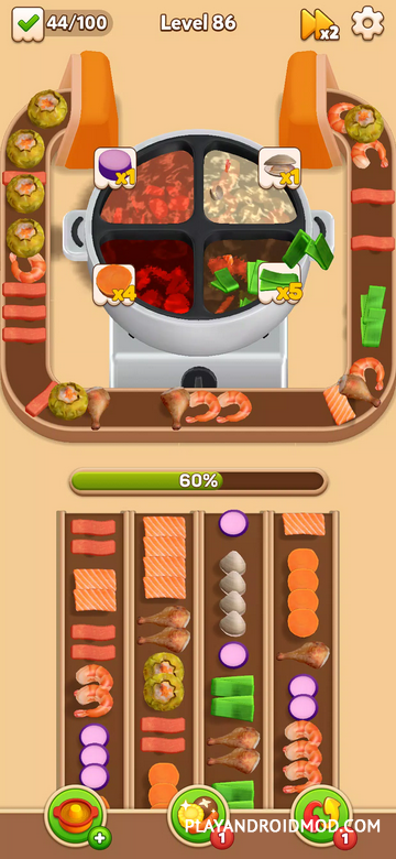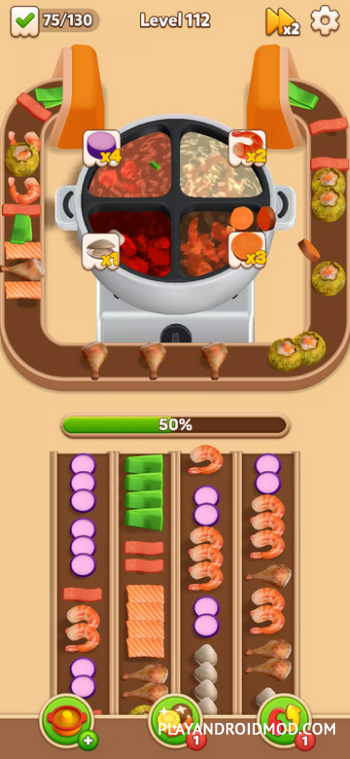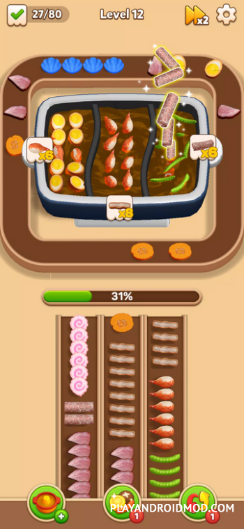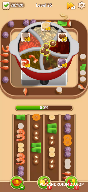 Hotpot Fever: Food Games – уникальное приложение, в котором гармонично переплелись кулинарная тематика и головоломки. Изначально игроку необходимо загрузить продукты на конвейерную ленту, и потом провести сортировку, согласно подсказкам. Как только уровень будет повышаться, будет повышаться скорость конвейерной ленты и количество комбинаций, которые необходимо собрать благодаря подсказкам. Дополнительная сложность: стратегический расчет вместимости конвейера (его постоянно нужно загружать, чтобы собрать комбинации), количество готовых блюд, которые нужно отдать и скорость передвижной ленты. Только в таком случае можно будет достигнуть успеха. Если же уровень покажется слишком сложным, то можно будет использовать бустер для решения проблемы.