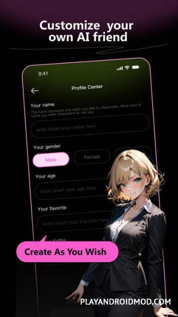 В приложении имеется редактор для создания персонажей. Кроме внешности, пользователь сможет выбрать характер, манеру общения и прочие параметры. Кстати, со временем виртуальные собеседники будут совершенствовать свои коммуникативные навыки.