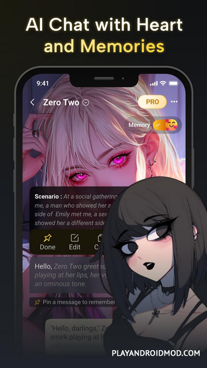 Fantasia: Character AI Chat - передовой инструмент для создания умных виртуальных компаньонов. С ними можно вести содержательные беседы, путешествовать по виртуальным фентезийным мирам, проигрывать авторские истории и сюжеты. Задействованные в ваших историях персонажи способны на протяжении долгого времени помнить свои «роли» и развиваться вмести с вами. Вы сможете использовать персонажей, имеющихся в коллекции утилиты, или создавать собственных, заручившись поддержкой AI. В частности, в обширной коллекции героев есть представители популярных аниме-сериалов, кинофильмов, шоу и фэнтези. Оживляйте их в ваших историях и совместно переживайте новые истории и сюжеты.