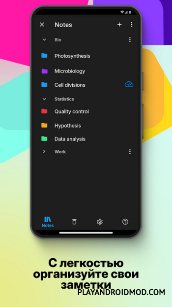 - возможность создания неограниченного количества блокнотов и страниц для заметок;