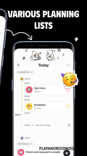 PlanJoy - приложение для тех, кто хочет максимально эффективно использовать свое время и иметь возможность отслеживать свой прогресс в профессии или личном росте. Дружелюбный утенок-компаньон поможет вам уверенно двигаться к цели, какой бы она ни была: профессиональный рост, избавление от лишних килограммов, долгосрочный проект и так далее. Он поможет вам организовать свое время и не сойти с дистанции, какой бы сложной не была поставленная задача. Также он подтолкнет вас к творчеству. Для этого в приложении есть несколько специальных настроек, позволяющих успешно справляться с задачами разной сложности: шаблоны сценариев, виджеты, таймер обратного отсчета для контроля срока выполнения проекта и календарь. При необходимости крупную задачу можно разбить на более мелкие и таким образом упростить ее выполнение. Для этого в приложении есть умная система раздробления. Пробуйте ее на дале и убедитесь в полезности этого умного планировщика.