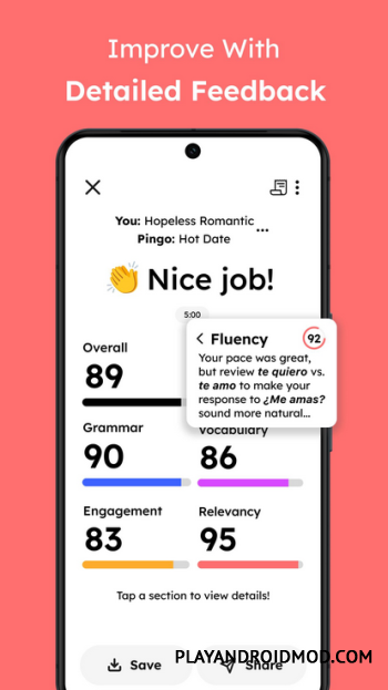 Pingo AI - одно из лучших приложений для изучения иностранных языков, которое подойдет даже детям от трех лет. Интегрированный в приложение искусственный интеллект поможет изучить более 15 языков, включая мандаринский, турецкий, португальский, вьетнамский, корейский и японский. Вы сможете с ним общаться и вести реальные диалоги, что позволит быстро освоить разговорную речь, повысить ее беглость и расширить словарный запас. Легко общаться с носителями языков вам помогут часто используемые в разговорной речи слова и фразы. AI адаптируется к вашему уровню знаний и темпу обучения, дает советы по улучшению уровня знаний, грамматики, беглости речи и вовлеченности в разговоры. Также вы можете использовать режим репетитора, который предназначен для закрепления знаний.