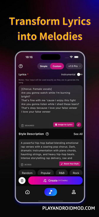 KP Music AI ― мощное приложение для создания оригинальных песен, текстов и битов с помощью ИИ. Оно подходит как новичкам, так и профессиональным музыкантам, позволяя сочинять студийные треки без музыкального образования. Есть более сотни жанров музыки и песен, которые можно использовать и в которых можно творить свои уникальные шедевры. Удобные инструменты, настройки, точное понимание запросов и промтов от лица ИИ, позволят получить тот результат, который хочется увидеть и услышать. ИИ-композитор сам подберет звуки, инструменты, мелодии и тексты, а также предложит голосовую озвучку и видео генерацию. Приложение поддерживает экспорт треков, редактирование текста и настройку вокала.