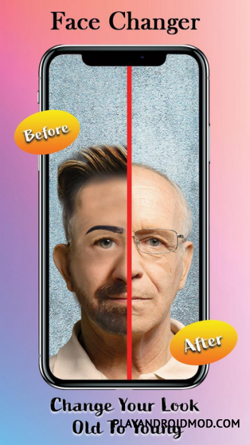 Приложение покажет, как будут выглядеть морщины, седые волосы, лысины и старческие жесты. С помощью масок старения вы можете мгновенно состарить лицо, добавив седую бороду, брови, лысины и морщины. Программа также умеет омолаживать - превратит старое лицо в более юное.