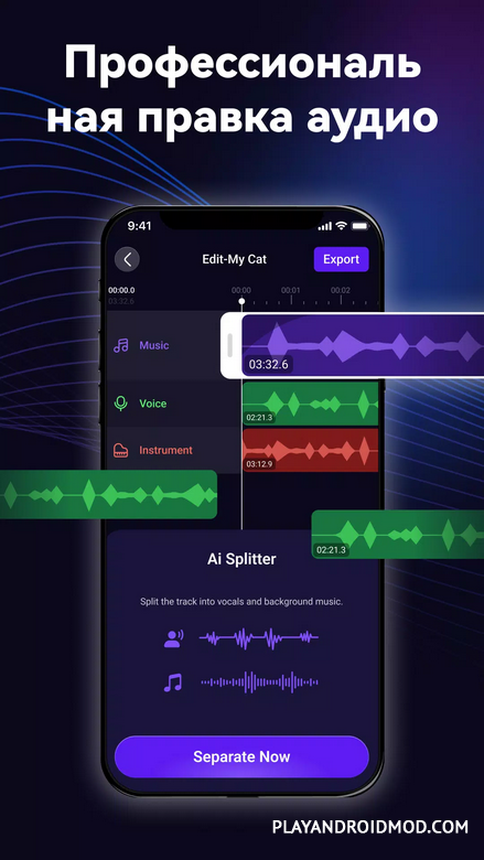 Rythmix: ИИ генератор музыки ― удобный и простой в освоении ИИ-инструмент, который позволит делать музыкальные треки без знания сложных программ и редакторов. Приложение сможет понять вашу идею и моментально создать трек на ее основе. К примеру, можно напеть или сыграть короткие мелодии, или же просто прописать то, что вам нужно получить в итоге. И после этого программа выдаст результат. Их можно редактировать благодаря встроенным функциям, у или создать новые варианты изменив вводные. Есть 20 жанров треков, то есть практически все популярные направления. Также присутствует функция создание видео, то есть можно делать небольшие клипы под ваши сгенерированные мелодии. Разобраться во всех фишках не составит труда благодаря интуитивному интерфейсу.